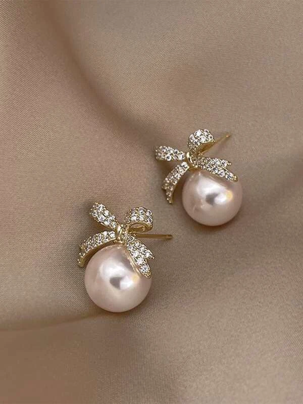 1 avaliação para Brincos com laço de strass & design de pérola – Dourado